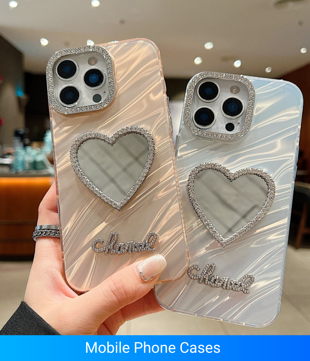 Heart Shaped Makeup Mirror Diamond Phone Case